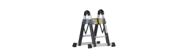Multipurpose one of a kind telescopic ladder. Due to its unique design they are perfectly suited and easy to transport, easy to store and they replace many other standard types of ladders. They will purposely serve in private and trade sectors. These highly durable ladders were manufactured using high quality aluminum combined with new technologies and thus creating a heavy duty piece of equipment providing stability in the work environment. Multipurpose ladder advantages: *Safe working load - 150kg. *Manufactured as per European safety standard EN131. *Ability to amend working length or height swiftly, bend them in half, shorten each end individually which makes them ideal to use when working on stairs or uneven surfaces. *Heavy duty rubber pads provide superior resistance to wear and ensures solid grip with working surfaces leaving no scratches. *Stabilizer adds even more stability and rigidity when ladder is being used.