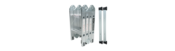 * New quality Multi Purpose Folding Aluminium Ladder Multi Function Product Features: * Make hard to reach jobs easier to be done. * Perfect for interior and exterior painting, decorating, loft access, cleaning windows, gutter cleaning, DIY activities etc. * Ladder can be set half way on the stairs. * Can be turned into step ladder or straight ladder. * Top end can be easily folded and stand ladder off the wall. * Light weight, easy to assemble. Can be folded down neatly for easy storage or transport. * Made of rust proof, light weight aluminium. With a load capacity of 150kg. * Can be transformed into different formations to fit a huge variety of purpose of different jobs. * Manufactured to EN131 part 1 and 2 specifications, and safety certificates. Product Specification: * Load capacity: 150kg. * Manufactured t EN131 part 1 and 2 specifications, and safety certificates. * Two stabilizer bars with large rubber feet offering excellent sold stability during operation. Product Description: This multi-positional ladder is probably the only ladder you will ever need. Ideal for jobs around the house, workshop and garden. It's unique multi-positional hinge system enables this ladder to easily transform into many different configurations. Robustly manufactured this ladder is suitable for heavy duty use.