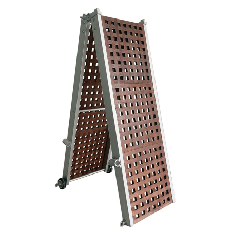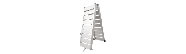 Foldable boat gangway entirely made of aluminum, very light and easy to manipulate. Non-slip surface. Seawater resistant construction.